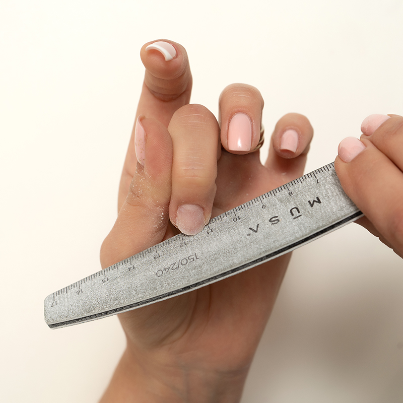 Avant d’appliquer du vernis à ongles, il est important de limer pour donner à l’ongle la bonne forme après avoir nettoyé les cuticules. La lime la plus utilisée en ce sens est celle en papier abrasif : essayez de jeter un œil aux limes MUSA : grâce au papier abrasif, à leur forme de croissant et à l’impression de la règle, elles vous permettent de limer et de façonner vos ongles avec facilité et précision. Il est cependant important d’éviter tout contact prolongé avec l’eau, mais surtout de bien nettoyer et sécher après utilisation.