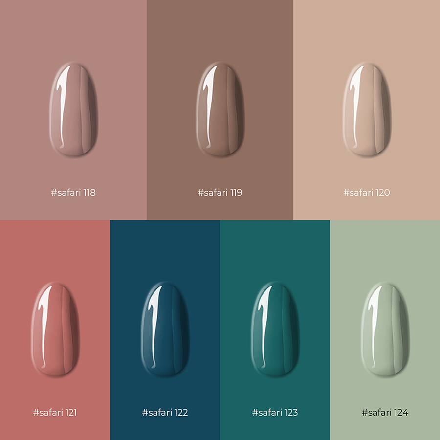Les vernis gel de la collection Safari se caractérisent par des couleurs extra pigmentées, c’est pourquoi il faut tenir compte des avertissements suivants : si vous souhaitez appliquer une double couche de la couleur souhaitée, il est conseillé de faire une passe fine et de durcir chaque couche pendant 60 sec. en lampe Led de 48 watts; dans le cas d’une seule application du produit, polymériser dans une lampe LED de 48 watts pendant 90/120 sec.